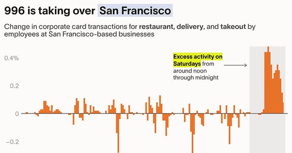 Ramp data shows San Francisco tech workers are increasingly working long hours associated with a new working culture called "996."996 is real