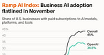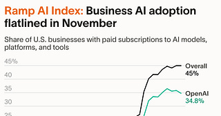AI adoption held flat at 45% of businesses in November. OpenAI dipped while Anthropic and Google gained. Ramp economist Ara Kharazian answers what the…